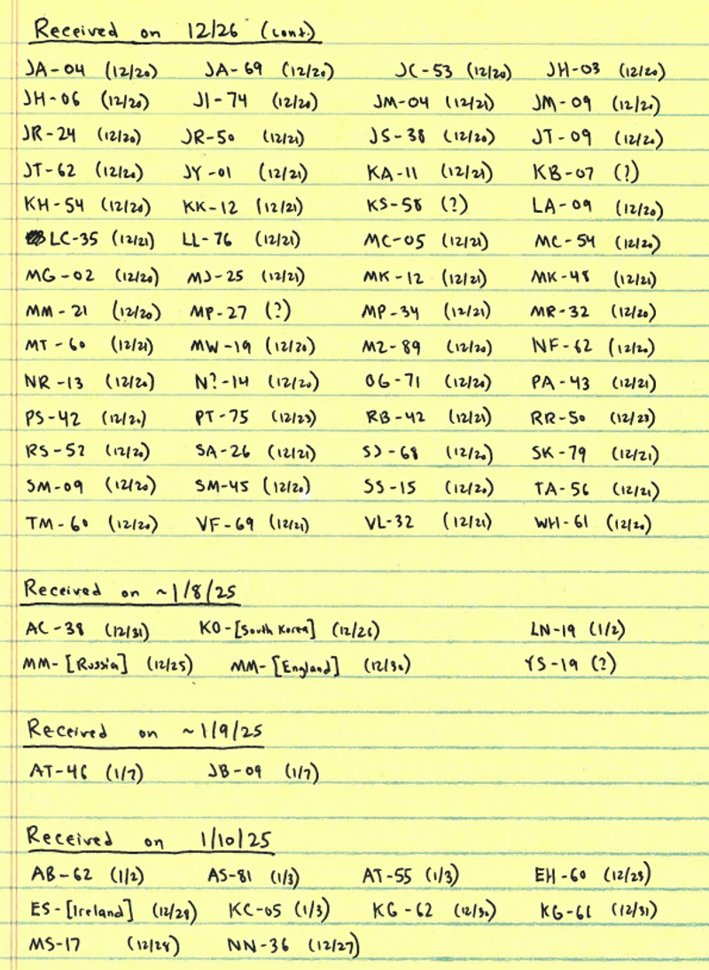 Below is Luigi’s catalog of all mail received by him to date. This mail catalog is provided to demonstrate the communication and information barriers faced by Luigi, which have been exacerbated by inaccurate media reports about his mail.