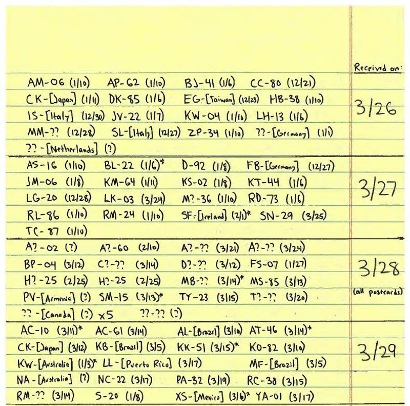 Below is Luigi’s catalog of all mail received by him to date. This mail catalog is provided to demonstrate the communication and information barriers faced by Luigi, which have been exacerbated by inaccurate media reports about his mail.